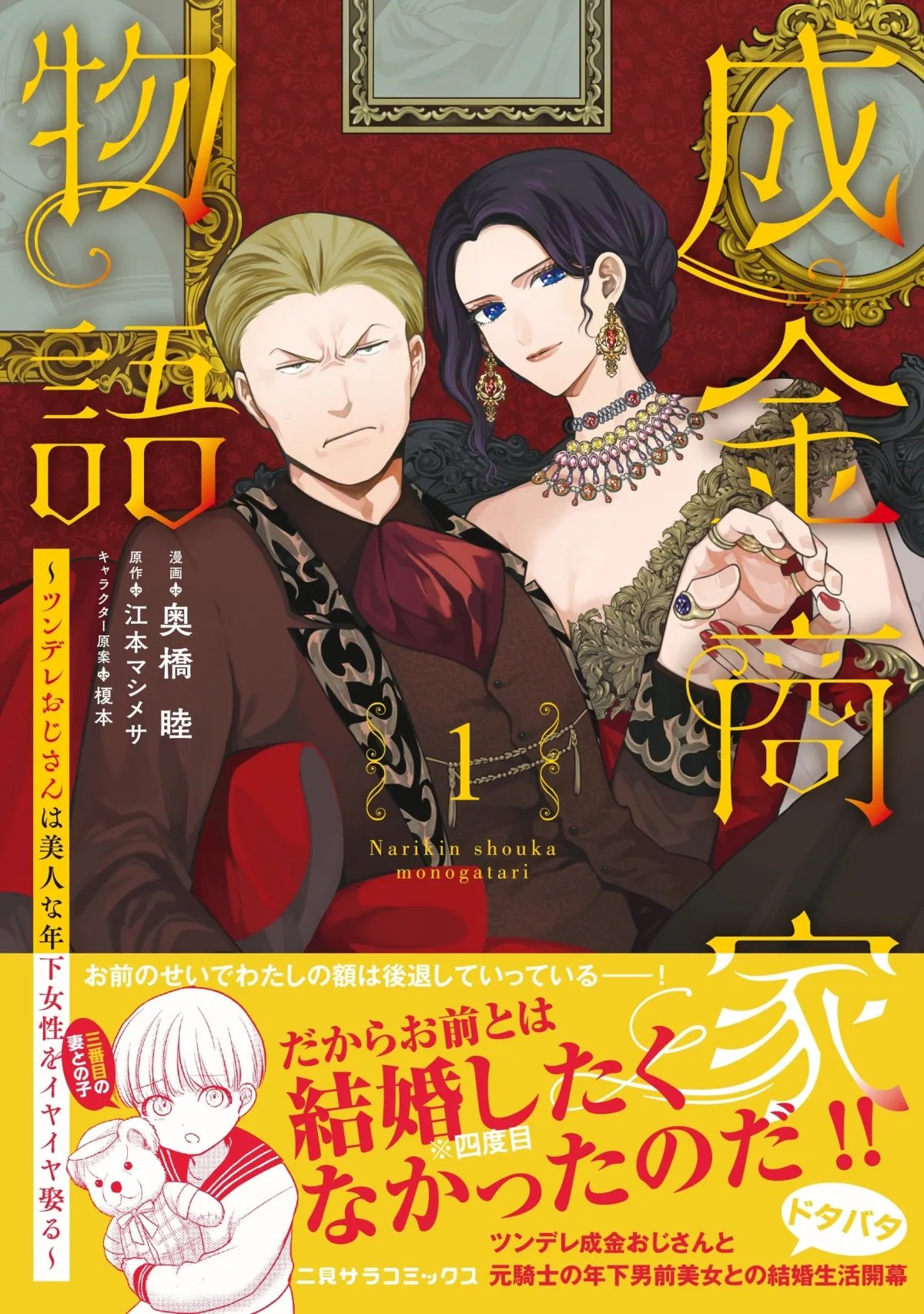 大人気原作を基にした『成金商家物語①〜ツンデレおじさんは美人な年下女性をイヤイヤ娶る〜』が本日、二見サラコミックスから発売されました!この作品は、ツンデレな中年成金と元騎士の年下美女との結婚生活を描いた心温まる物語です。