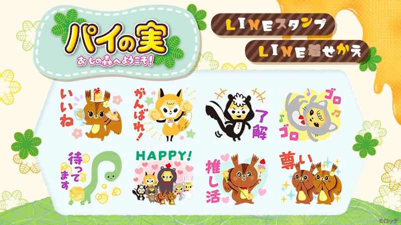 LINEスタンプは全体で100LINEコイン(スタンプショップ価格)または250円(LINE STORE価格)で、LINE着せかえは150LINEコイン(スタンプショップ価格)または370円(LINE STORE価格)でそれぞれ手に入ります。ユーザーは手軽にスタンプを購入し、会話の中で「パイの実」を題材にしたコンテンツを楽しむことができます。さらに、これは『推し活』をしている方々にも士気を高めるのに最適なアイテムとなるでしょう。