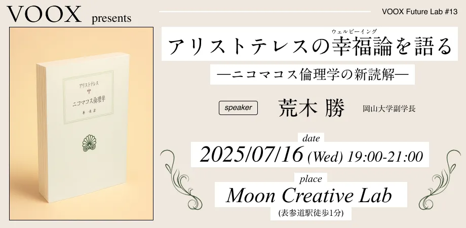 7月16日、水曜日に「アリストテレスの幸福論を語る〜ニコマコス倫理学の新読解〜」という特別イベントが開催されます。近年、ウェルビーイングに関する議論が盛り上がる中で、アリストテレスの古典的な著作が新たな光を当てる機会です。