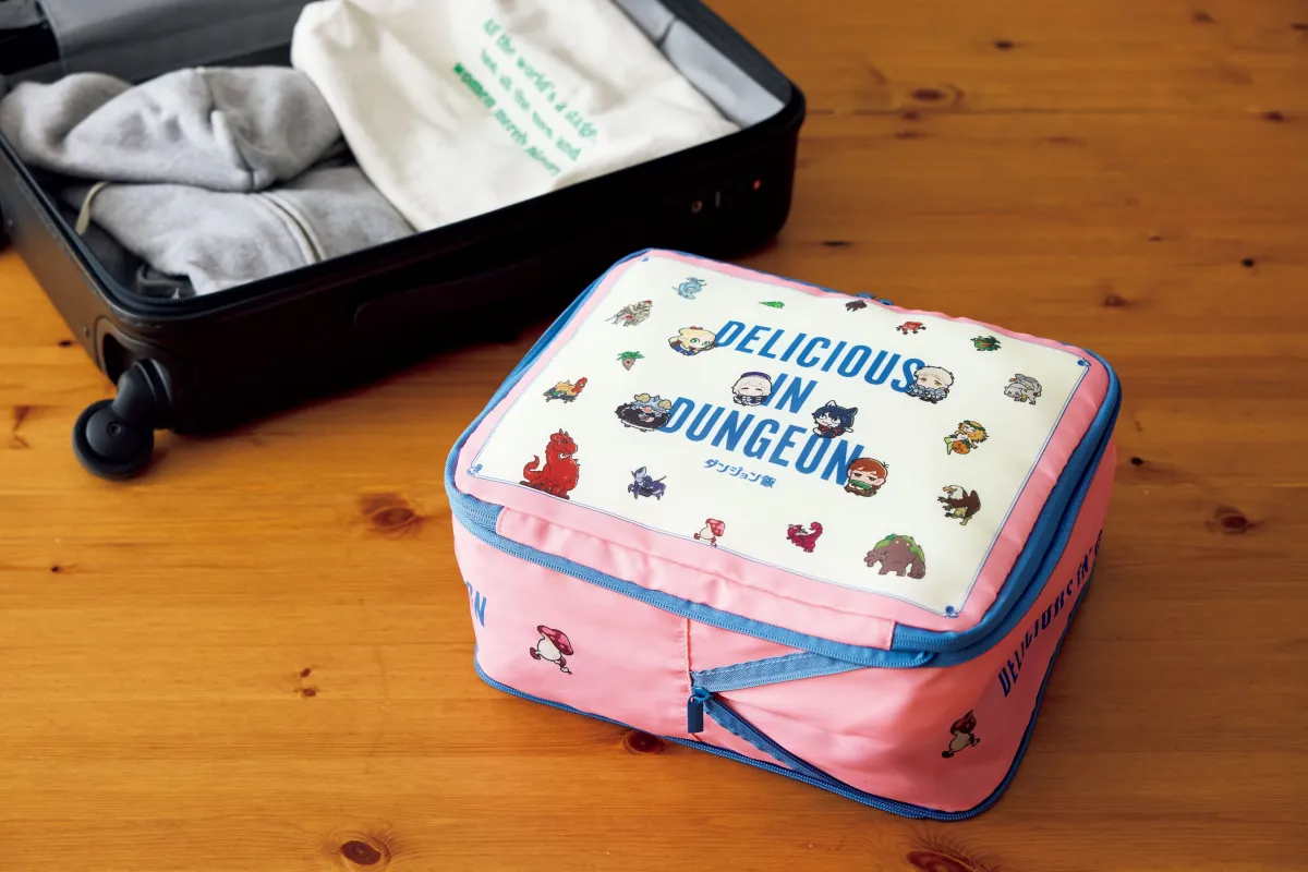 『ダンジョン飯』の可愛らしいイラストが散りばめられたこの圧縮収納ポーチは、見た目だけでなく機能性も抜群です。1泊2日の旅行にも対応できる大容量で、Tシャツ約4枚とフェイスタオル約3枚、さらにお子様のおむつなども楽に収納できます。そのため、旅行やお出かけの際に非常に便利です。