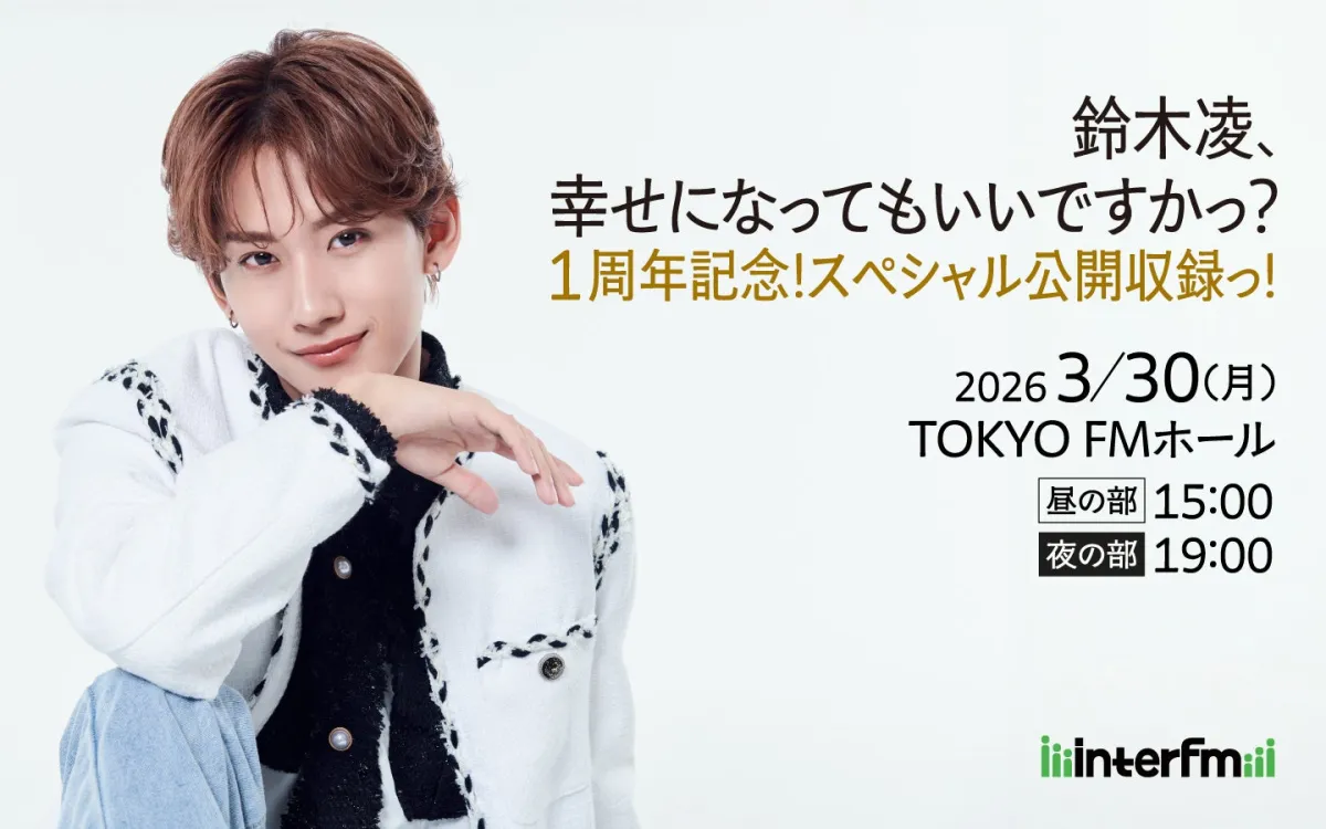 インターFMで放送されている『鈴木凌、幸せになってもいいですかっ?』が、2026年3月30日(月)に1周年を迎えます。この特別な日を記念し、初の公開収録イベントをTOKYO FMホールで開催することが決定しました。このイベントは昼夜2回に分けて行われ、豪華なゲストが登場します。