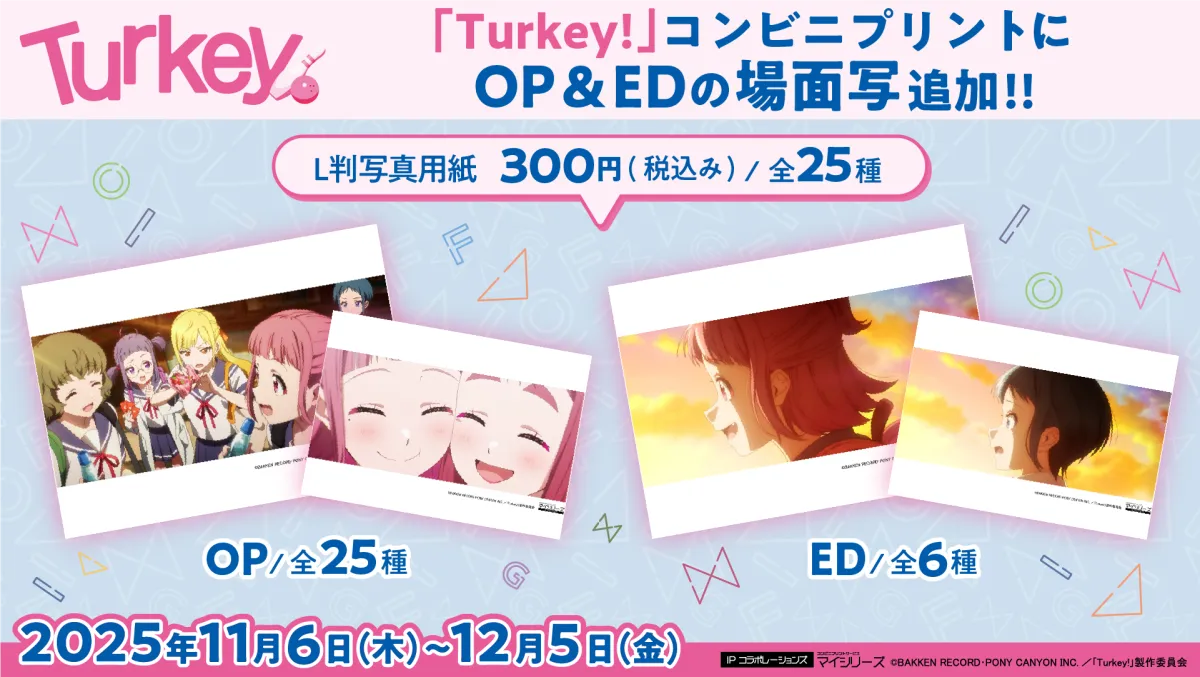 『Turkey!』の場面写は、全国のファミリーマート、ローソン、ミニストップ、ポプラにて取り扱われています。ただし、一部店舗では写真シール紙を使用したプリントができない場合がありますので、購入前に店舗で確認を行うことをおすすめします。
