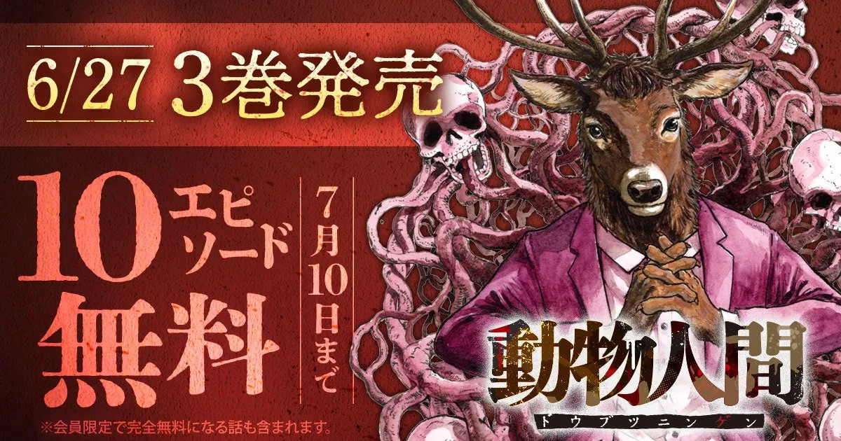 ヤングアニマルWebで、岡田卓也氏の人気作『動物人間』の第3巻が2025年6月27日(金)に発売されます。この特別な発表を記念して、来るべきリリースに先駆けて、10エピソードを無料で楽しめるキャンペーンが実施されます。この機会に、会員限定の特別コンテンツも見逃さないでください。