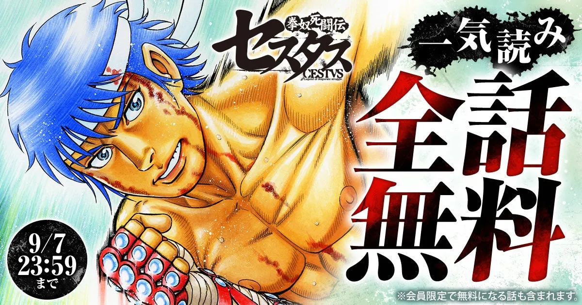 漫画ファンに朗報です!「ヤングアニマルWeb」で連載中の人気作品『拳奴死闘伝セスタス』が、48時間限定で全話無料で閲覧できる特別キャンペーンを実施しています。この機会に、作品の魅力を存分に楽しんでみてはいかがでしょうか。