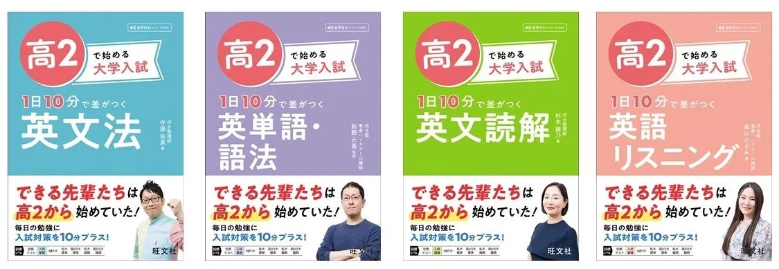 旺文社が2025年7月10日に新たに発表したのは、高校2年生向けの大学入試対策シリーズです。「高2で始める大学入試」というテーマのもと、特に日々の勉強に少し足して入試準備ができる問題集として作られています。このシリーズには、以下の4つの書籍が含まれています。