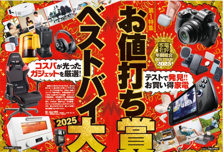 2025年はコスパを重視する時代。毎日の充実した生活を送るためのお役立ちアイテムが登場しています。今号では家電批評が自信を持っておすすめする商品を紹介しましたが、今後もより多くの厳選アイテムを紹介する予定ですので、ぜひチェックしてください。自分にぴったりな製品を見つけて、賢く生活をアップデートしましょう!