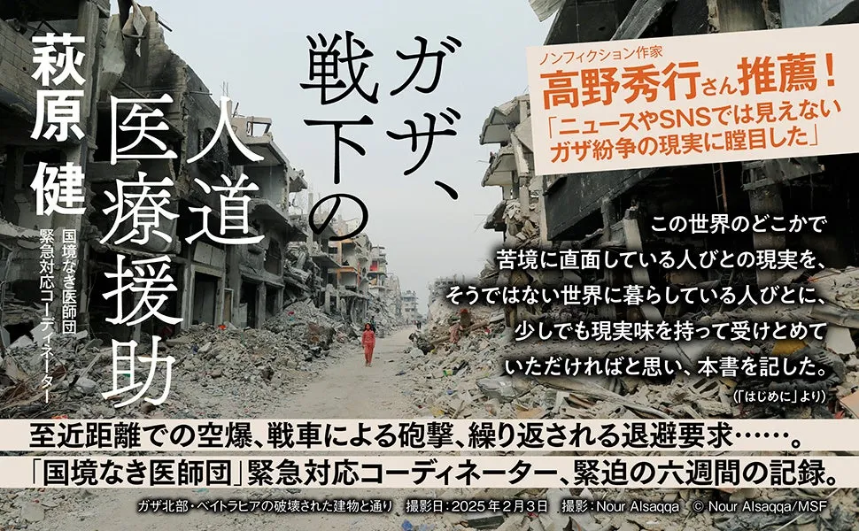 国境なき医師団(MSF)の緊急対応コーディネーターとして活動を続ける萩原健さんが、ガザの戦乱の中で医療援助に挑む姿を描いた新刊、