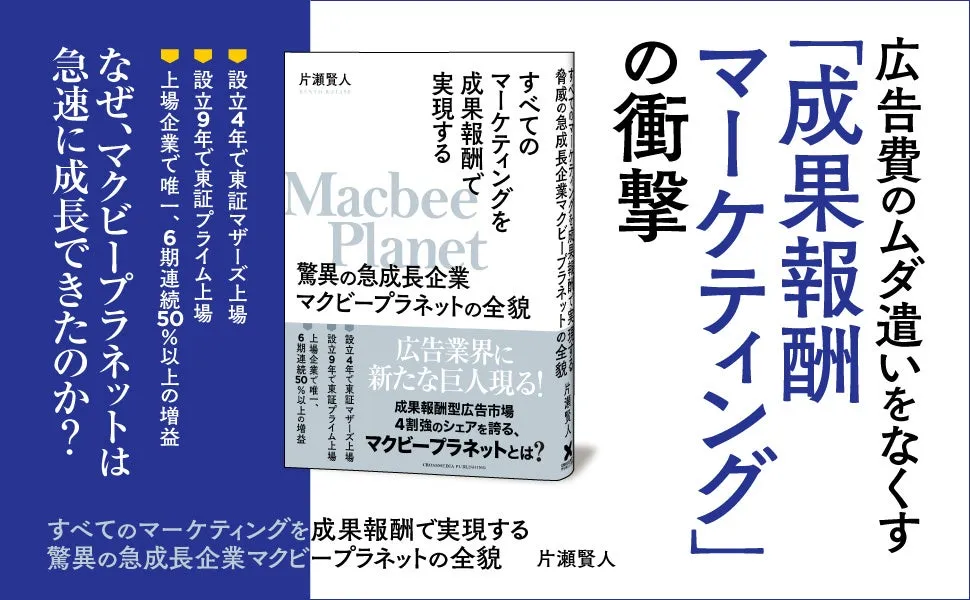 株式会社クロスメディア・パブリッシングが、2025年5月23日に刊行する書籍『すべてのマーケティングを成果報酬で実現する驚異の急成長企業マクビープラネットの全貌』が注目を集めています。これにより、広告業界での成果報酬マーケティングの重要性が再確認され、同業界での新たなビジネスモデルの可能性を探る内容となっています。