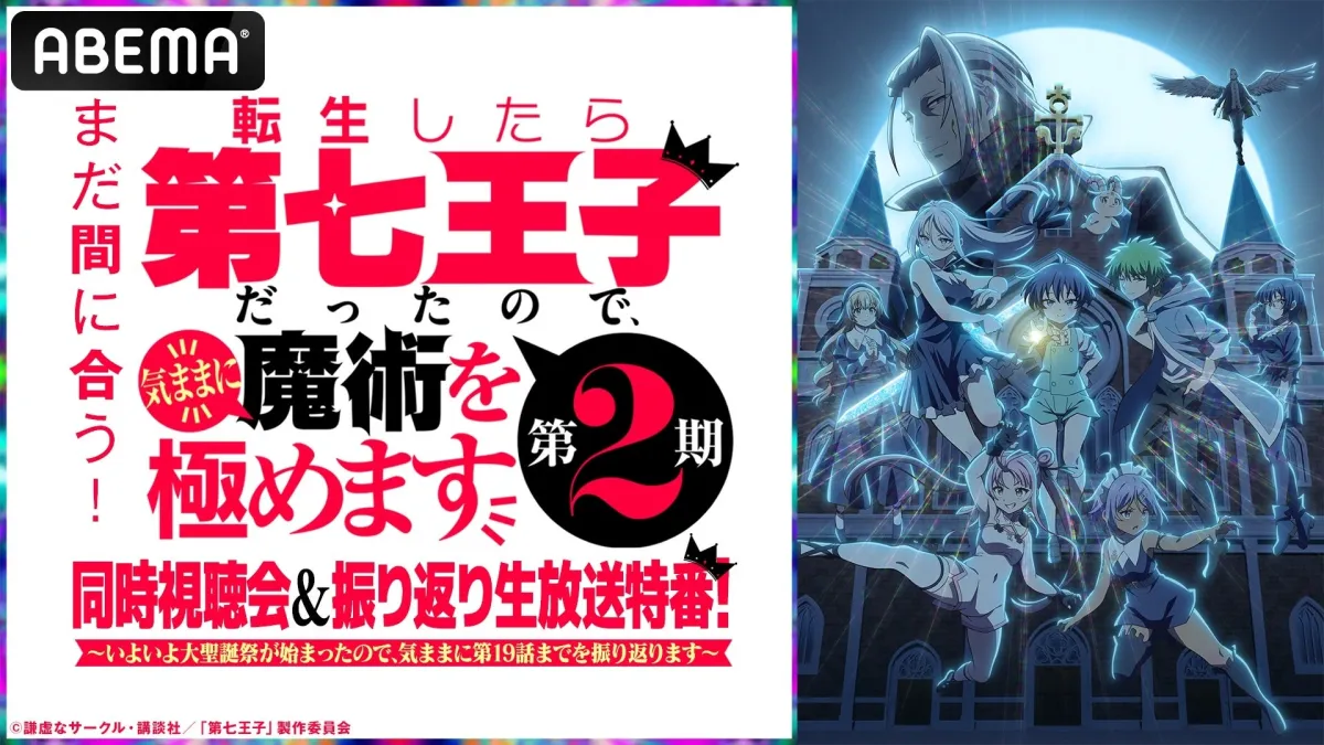 大ヒット異世界魔術ファンタジー『転生したら第七王子だったので、気ままに魔術を極めます 第2期』の同時視聴会と振り返り生放送特番が、8月24日(日)夜6時45分から「ABEMA」で独占無料放送されることが発表されました。
