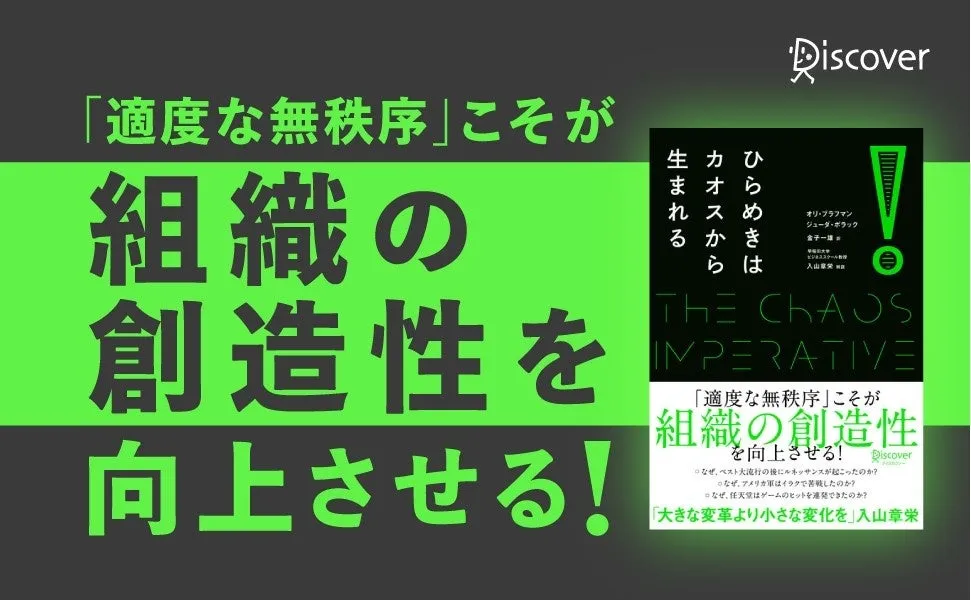 2025年2月21日、株式会社ディスカヴァー・トゥエンティワンから、オリ・ブラフマンとジューダ・ポラックの名著『ひらめきはカオスから生まれる』が復刊されます。この書籍は、現代の組織において必要な創造性とイノベーションの促進のために、「適度な無秩序」がどのように役立つかを説明しています。私たちが慣れ親しんだ効率重視の管理スタイルから一歩踏み出し、新たな視点を提供する内容に、多くの注目が集まっています。