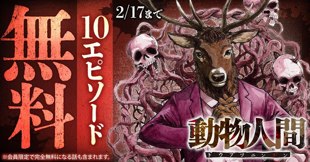 岡田卓也による物語「動物人間」がヤングアニマルWebで全10エピソードを無料でお楽しみいただけるチャンスを迎えています。特に、会員限定で完全に無料となるエピソードもあり、注目を集めています。この特別な提供は2月17日(月)までの期間限定です。ファンの方々や新たに興味を持った方々には、ぜひこの機会を逃さずに楽しんでいただきたいです。