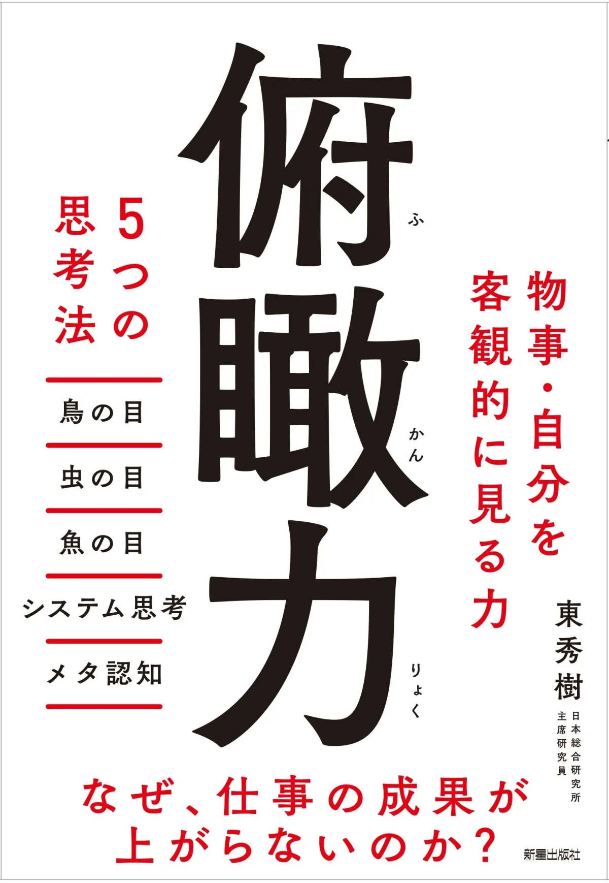 本書では、俯瞰力を「5つの思考法」として具体的に紹介しています。これらの思考法を身につけることで、ビジネスの悩みを解消し、より効率的に業務を進めることができるでしょう。
