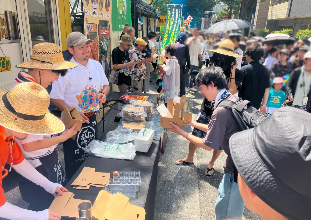 今年も豪華な出店が並ぶ中、大和製罐はオリジナルキッチンカー「カエル・ザ・バル」で参加しました。このキッチンカーは、人気クリエイター「ひみつ基地。」とのコラボレーション企画として、1Day Steel Cupで提供される特製ドリンクを販売しました。店前には多くのファンが集まり、販売が始まると同時に長蛇の列ができました。