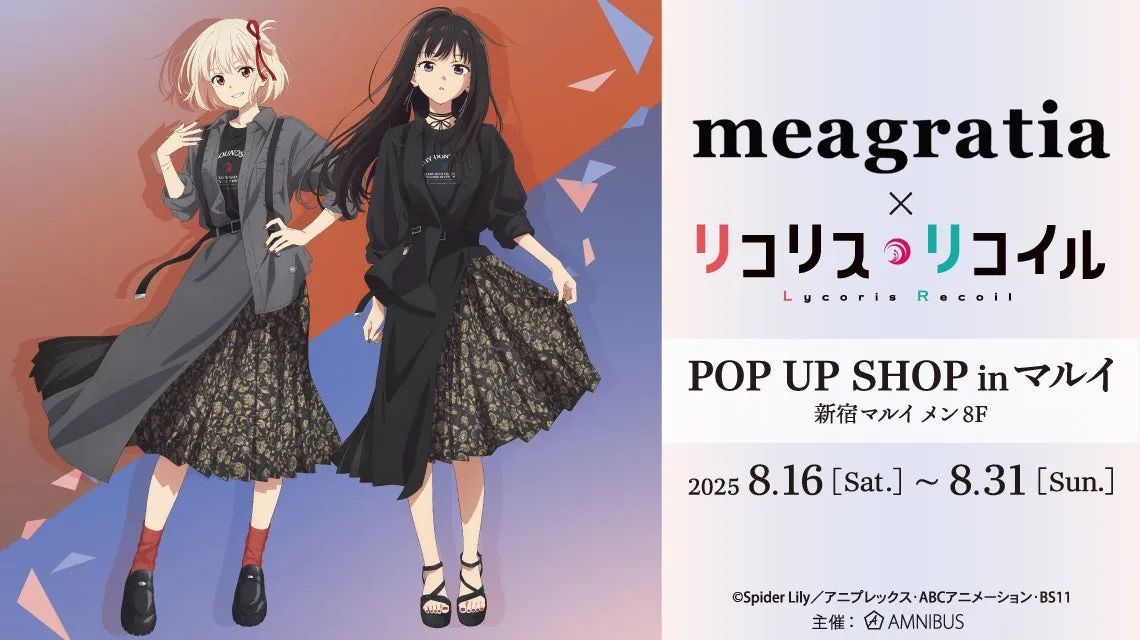 TVアニメ「リコリス・リコイル」のファンが待望のポップアップショップが新宿マルイ メンで開催されます!このイベントは「meagratia×リコリス・リコイル」というテーマで、2025年8月16日から8月31日(ただし8月20日は休業日)まで、特設会場にはオリジナル商品が数多く販売されます。入場は無料で、営業時間は11:00から19:00まで。イベントを通じてファン同士の交流も楽しめる機会です。