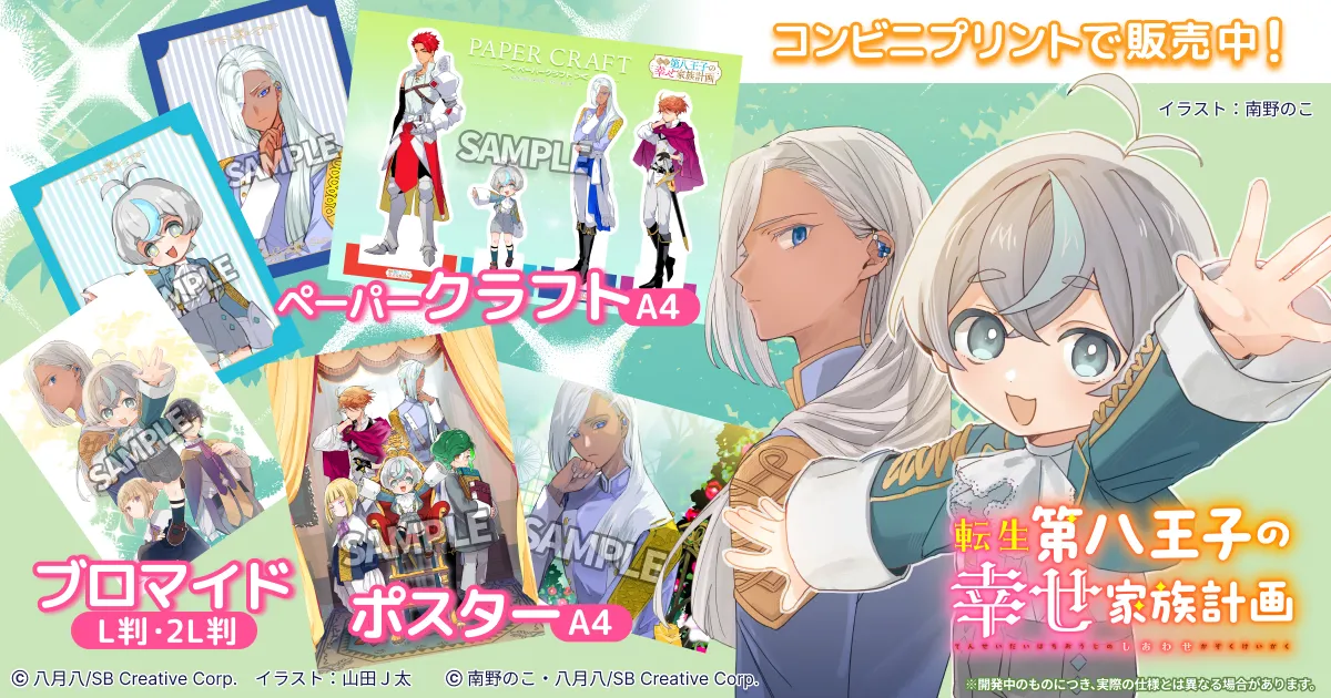 - - GAコミック『転生第八王子の幸せ家族計画』 (漫画: 南野のこ, 原作: 八月八, キャラクター原案: 山田J太)