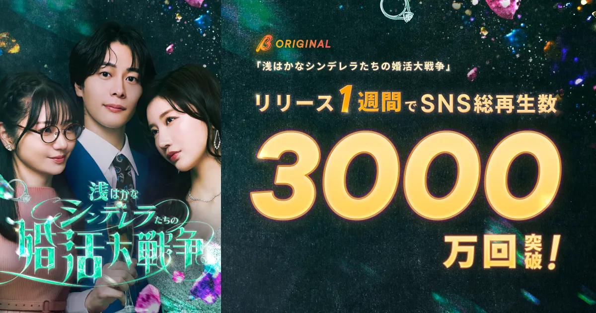 2026年1月21日、小倉ゆうかが主演するショートドラマ『浅はかなシンデレラたちの婚活大戦争』が配信をスタートしました。その初週でなんと SNS の総再生数が 3000 万回を超え、BUMP 内の週間ランキングおよび 24 時間ランキングでともに 1 位を獲得しました。