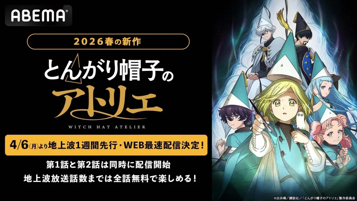 この春、壮麗なファンタジーの世界で新たな冒険が幕を開けます。ぜひ『とんがり帽子のアトリエ』をABEMAで楽しみ、魔法使いの世界にどっぷり浸ってみてはいかがでしょうか。