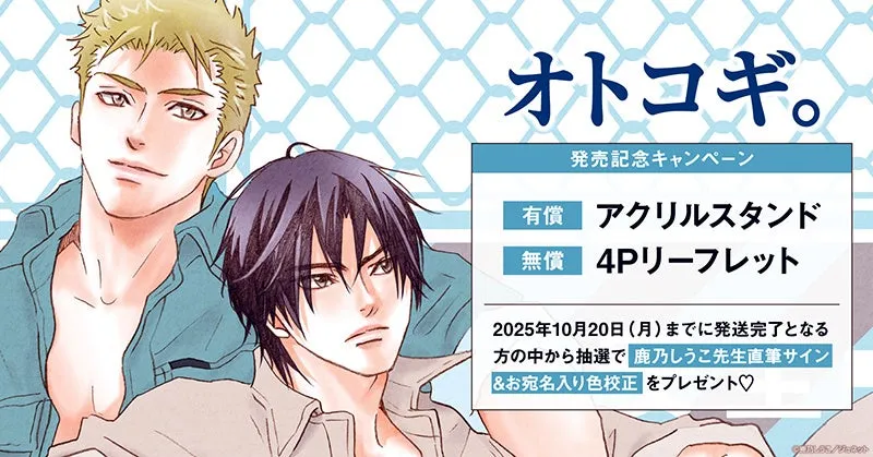 鹿乃しうこ先生の最新コミックス『オトコギ。』の発売を記念し、ホーリンラブブックスが特別なキャンペーンを開催します。このキャンペーンでは、対象商品を購入した方の中から抽選で、直筆サインとお宛名入りの色校正をプレゼント!これはファンにとって貴重なチャンスです。