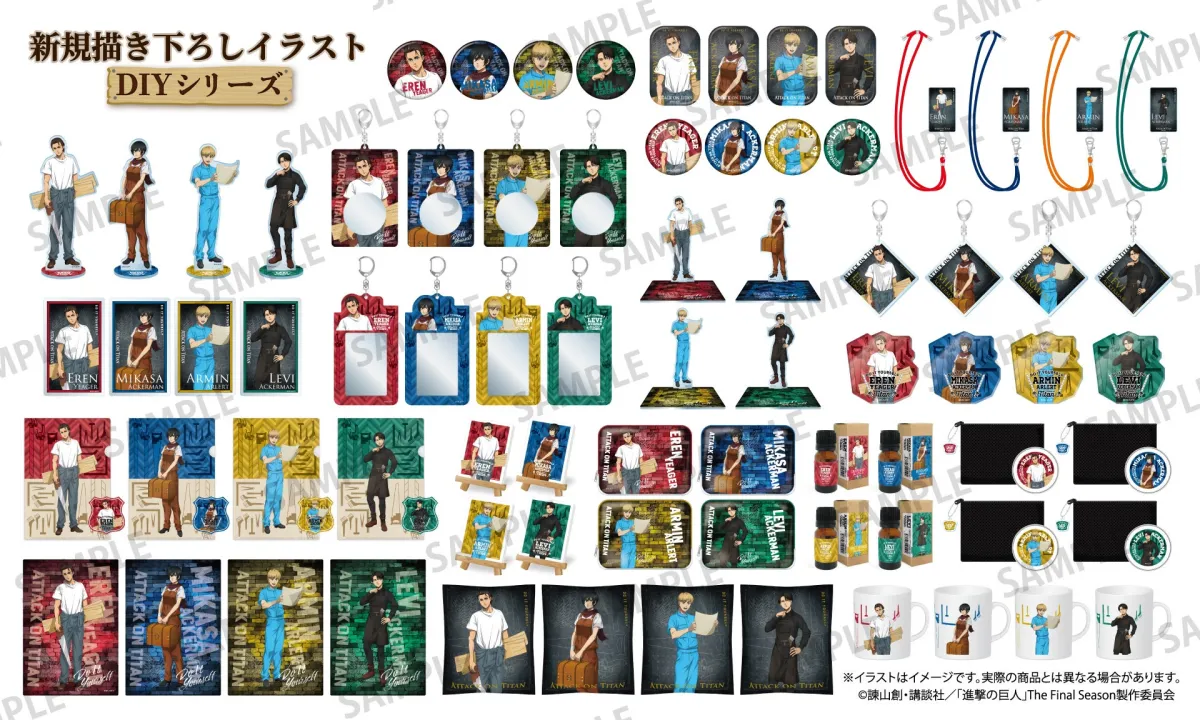 大人気アニメ『進撃の巨人』から、待望のオリジナル描き下ろしイラスト“DIYシリーズ”が新たなグッズとして登場します。今回のテーマは、「思い思いにDIYに勤しむキャラクターたち」。それぞれのキャラクターが持つ個性的な魅力を存分に楽しめるアイテムが揃っています!