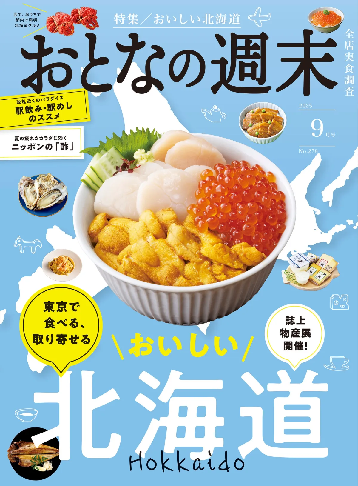 『おとなの週末』2025年9月号がついに発売されました。この号では東京で手軽に楽しめる「おいしい北海道」を大特集。北海道の豊かな食材を取り寄せたり、実際に味わうためのおすすめ情報が満載です。