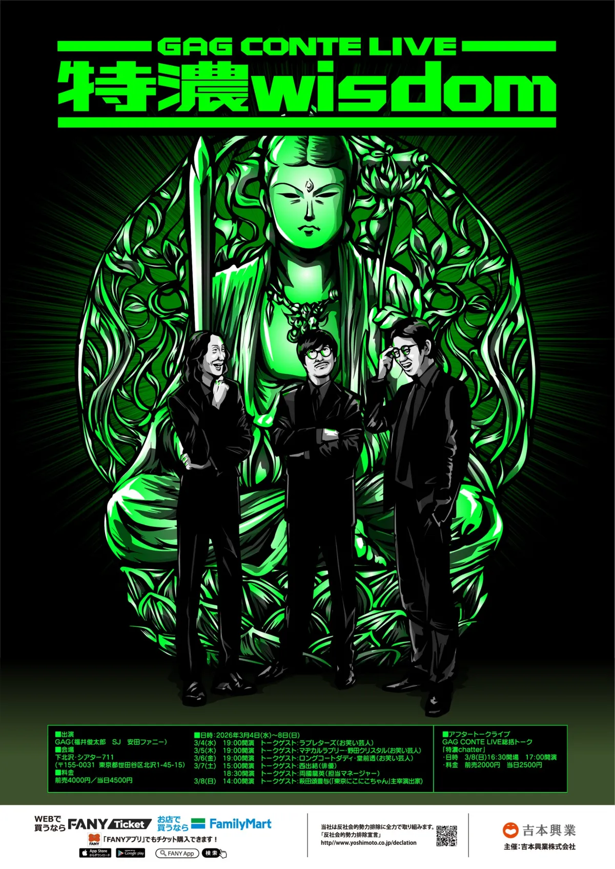 2026年3月4日から8日まで、下北沢・シアター711でGAGのコントライブ「GAG CONTE LIVE『特濃wisdom』」が全6公演行われることが発表されました。この公演は、GAGが悲願のキングオブコント優勝を目指して繰り広げる「特濃」のコントがメインとされ、前回の小劇場B1に続いて、カルチャー空間のシアター711で新たな世界観をお披露目します。