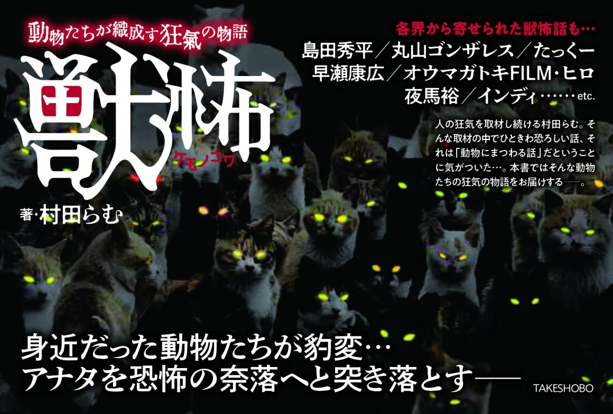 2025年3月1日、株式会社竹書房から新刊『獣怖~動物たちが織成す狂氣の物語~』が発売されます。この本は、著者である村田らむが、動物にまつわる恐怖の物語を網羅した作品です。もともと村田氏は、人間の狂気をテーマにした取材を行ってきましたが、彼が気づいたのは、その取材の中で特に恐ろしいのは、実は動物に関する話だということ。そこで、身近にいる動物たちが引き起こす狂気を取り上げています。