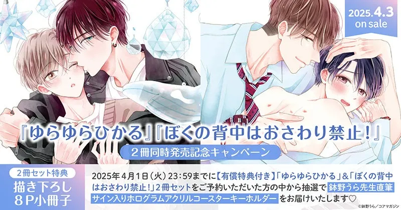 人気BL作家、鉢野うら先生の新作『ゆらゆらひかる』と『ぼくの背中はおさわり禁止!』が、2025年4月3日に同時に発売されます。この待望のリリースに際し、ホーリンラブブックスでは特別なキャンペーンが開催されており、ファン必見です!