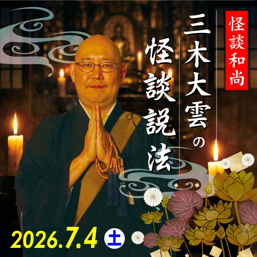 三木大雲和尚は、1972年に京都の寺院で生を受け、多くの修業を経て第38代住職に就任した僧侶です。自身の実体験や実際にあった話を基に、観衆を引き込む形で怪談を語り、そこから仏教の教えへとつなげていくスタイルが特徴です。テレビやラジオ、YouTubeを通じて、多くの人々に影響を与えており、「稲川淳二の怪談グランプリ2014」および「“最恐”怪談師決定戦怪談王2018」の優勝歴も持ちます。