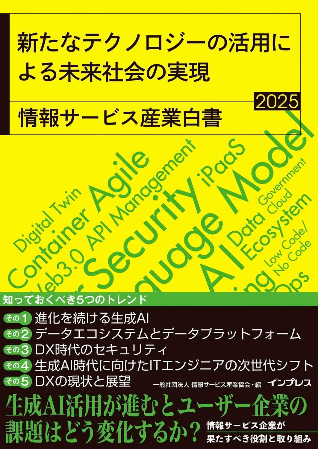 2025年7月1日(火)に発売予定の『新たなテクノロジーの活用による未来社会の実現 情報サービス産業白書2025』は、生成AIを含む新技術による企業の変化や課題について、さらには情報サービス企業がどのようにこれらの課題を解決できるかに焦点を当てています。本書は、インプレスグループが発行するものであり、同社はIT関連メディアを幅広く展開しています。