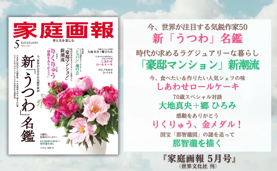 『家庭画報 5月号』は、4月1日に発売される家の美を追求するための一冊です。巻頭特集で紹介しているのは、「新『うつわ』名鑑」。ここでは、全世界から注目を浴びる気鋭の作家たち50人が選ばれ、その独自の作品を通じて新たな価値観が提示されています。これらの作家たちは、伝統的な工芸技術を受け継ぎながらも、アートとしての要素を取り入れた新しい「うつわ」を創造しています。
