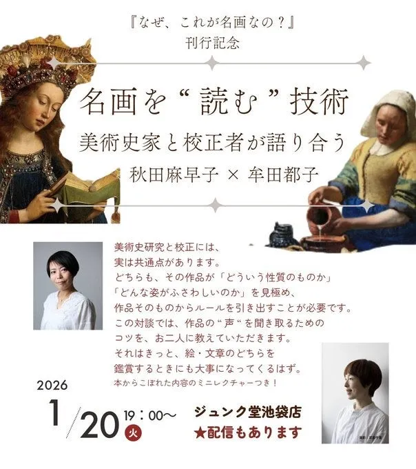 「名画」という言葉は、見た目の美しさだけでなく、時代背景や作品の持つメッセージを読み取る力を含んでいます。このイベントでは、参加者が「絵を見る眼」を育て、自らの感性を高める手助けをすることを目的としています。秋田さんは、美術史を専門とし、数々の著書を持つ実力派。また、牟田さんは校正のプロとして、文章の持つ力や文体の重要性を説いてきた経験を持ちます。この二人の対談は、絵画と文章がどのようにして情報を伝え、どれほどの工夫が凝らされているかを教えてくれる貴重な機会です。