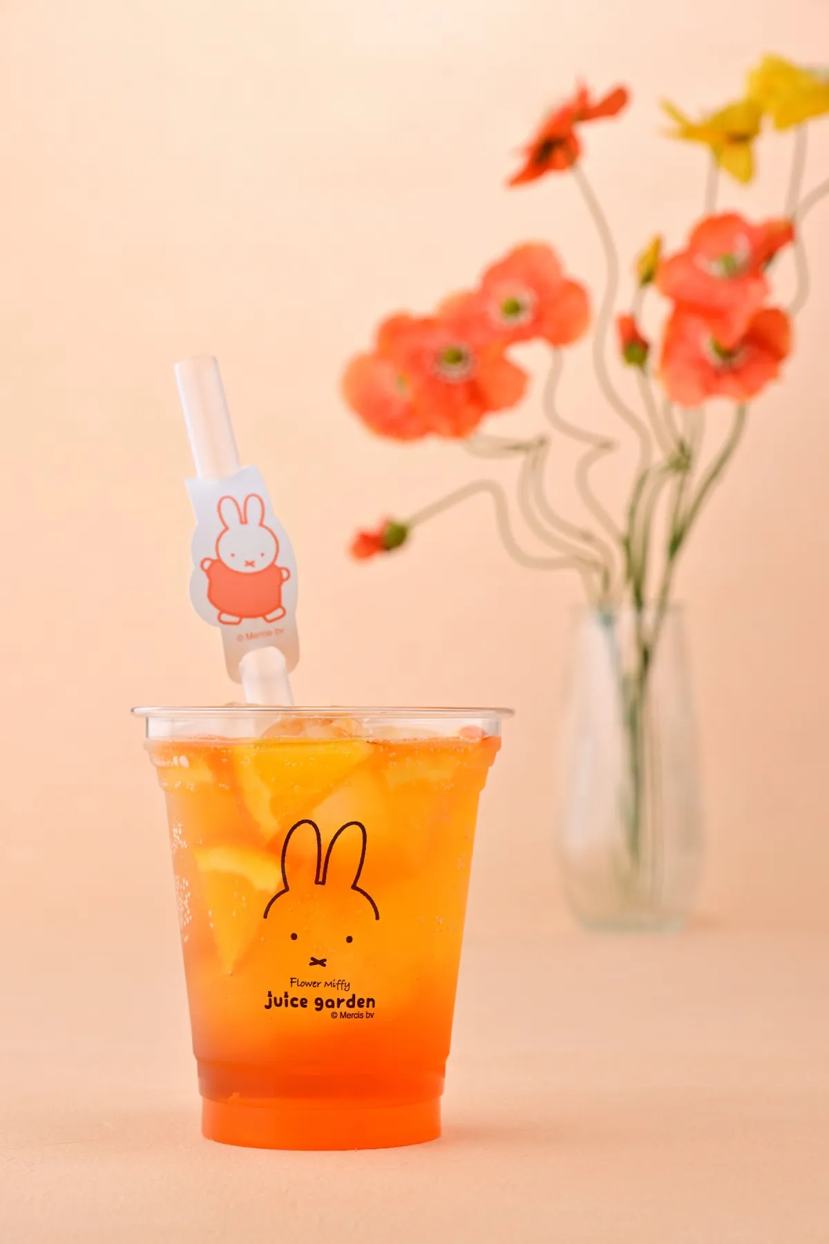 この「フラワーミッフィー オレンジルイボスティーソーダ」は、春から初夏の訪れを感じられるドリンクとして、オレンジの明るい色合いと爽やかな風味が特長です。オレンジの甘酸っぱさと、ルイボスティーの豊かな味わいが絶妙に組み合わさった一杯は、カットオレンジをトッピングし、シュワシュワとしたソーダが喉を潤す、まさにリフレッシュにぴったりなドリンクです。