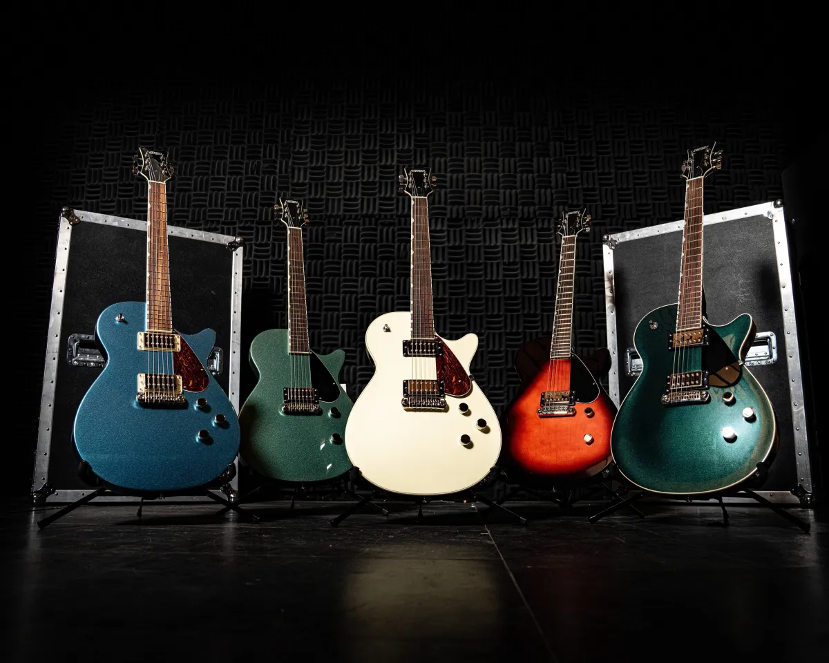 新しいJetシリーズは、現代のミュージシャンのニーズを反映したデザインが特徴です。アイコニックなルックスに加え、力強いサウンドを実現した多用途なギターは、演奏性の快適さと確かなチューニングの安定性を兼ね備えています。140年以上の歴史を持つGretschは、ジャンルを超えたアーティストたちから支持を受けており、そのDNAが新しいJetシリーズに凝縮されています。