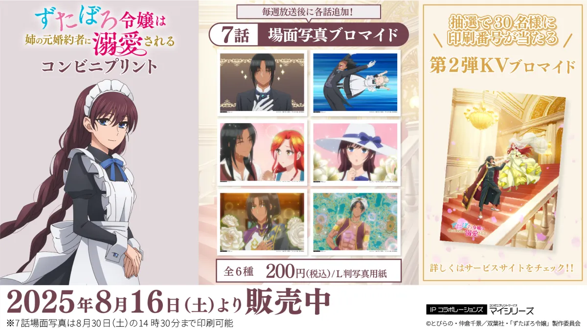 現在放送中のTVアニメ「ずたぼろ令嬢は姉の元婚約者に溺愛される」が、ますますの話題を呼んでいます。その中で、コンビニプリントサービスに第7話の場面写真が新たに追加されたことが発表されました。