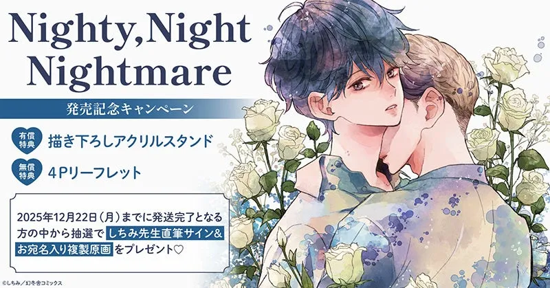 キャンペーンは、2025年11月21日に発売される幻冬舎コミックスの『Nighty,Night Nightmare』が対象商品です。特に「【有償特典付き】Nighty,Night Nightmare」と「Nighty,Night Nightmare」を購入し、期間内に発送が完了すると、自動で抽選に応募することができます。これは、しちみ先生のサイン&お宛名入りの複製原画をゲットできる貴重なチャンスです。