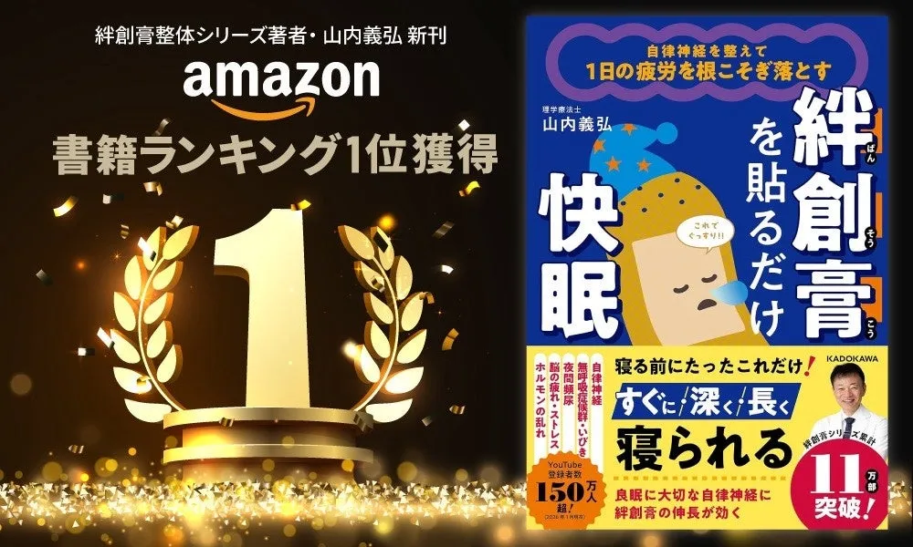 YouTubeで150万人以上の登録者を抱える人気の理学療法士、山内義弘氏の新刊『自律神経を整えて1日の疲労を根こそぎ落とす 絆創膏を貼るだけ快眠』が、2026年3月11日時点でAmazonの「睡眠」カテゴリーにて見事1位を獲得しました。体調やストレスに悩む多くの人々に新たな解決策を提供する本書は、どのような内容なのでしょうか。