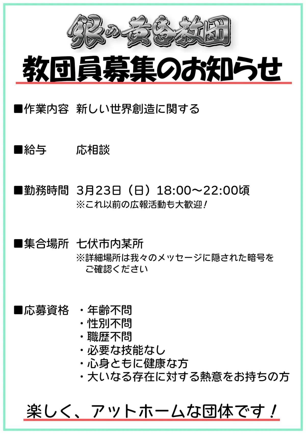 2. アプリを開き、「教団員募集のお知らせ」を選択