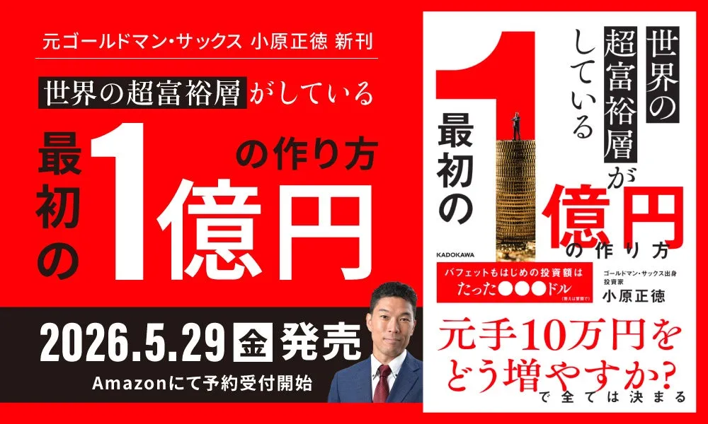 来る2026年5月29日、元ゴールドマン・サックスの実業家・小原正徳氏による新刊『世界の超富裕層がしている「最初の1億円」の作り方』がKADOKAWAから出版されることが発表された。書籍の予約受付はすでにAmazonで開始されており、多くの期待が寄せられている。