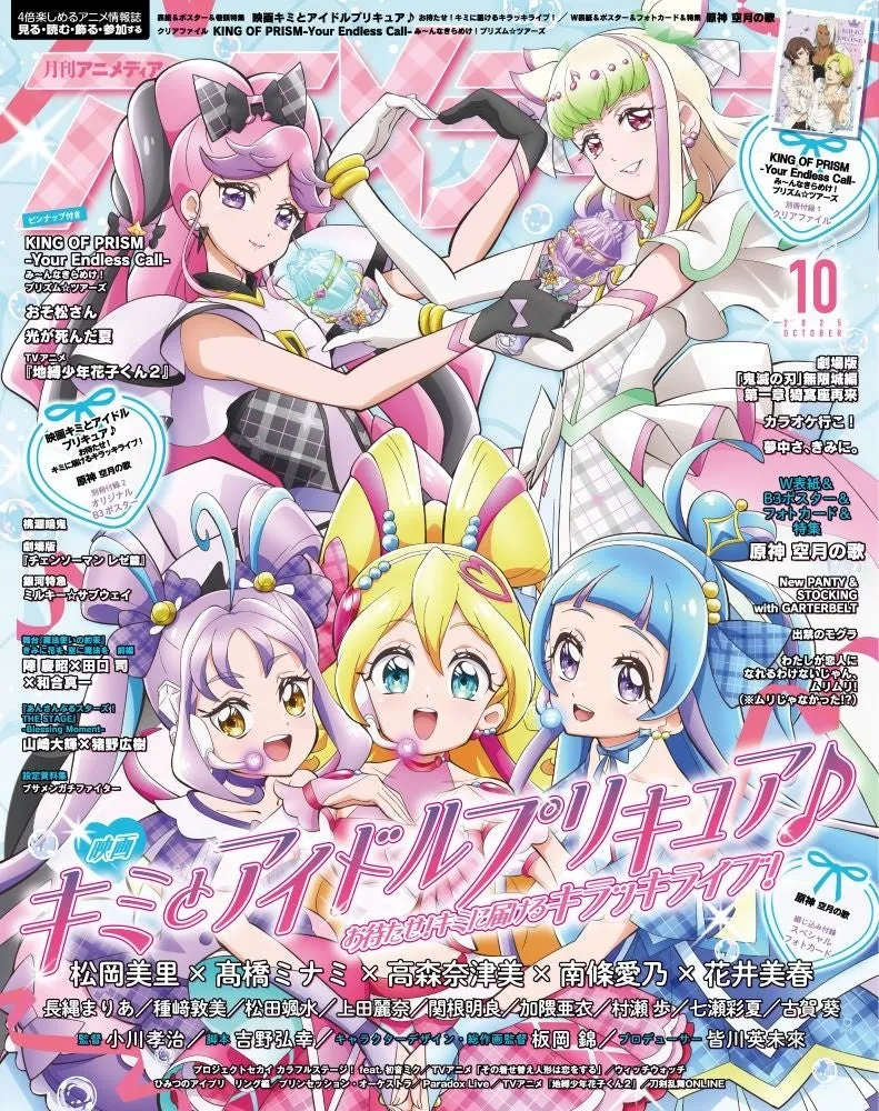 アニメファンの皆さん、お待たせしました!アニメ情報誌「アニメディア」の2025年10月号が9月10日に発売されます。今月号の表紙を飾るのは、待望の新作映画『キミとアイドルプリキュア♪ お待たせ!キミに届けるキラッキライブ!』です。この作品の特別な描き下ろしイラストが目印となっており、裏面には人気ゲーム『原神 空月の歌』のキャラクターたちも登場しています。