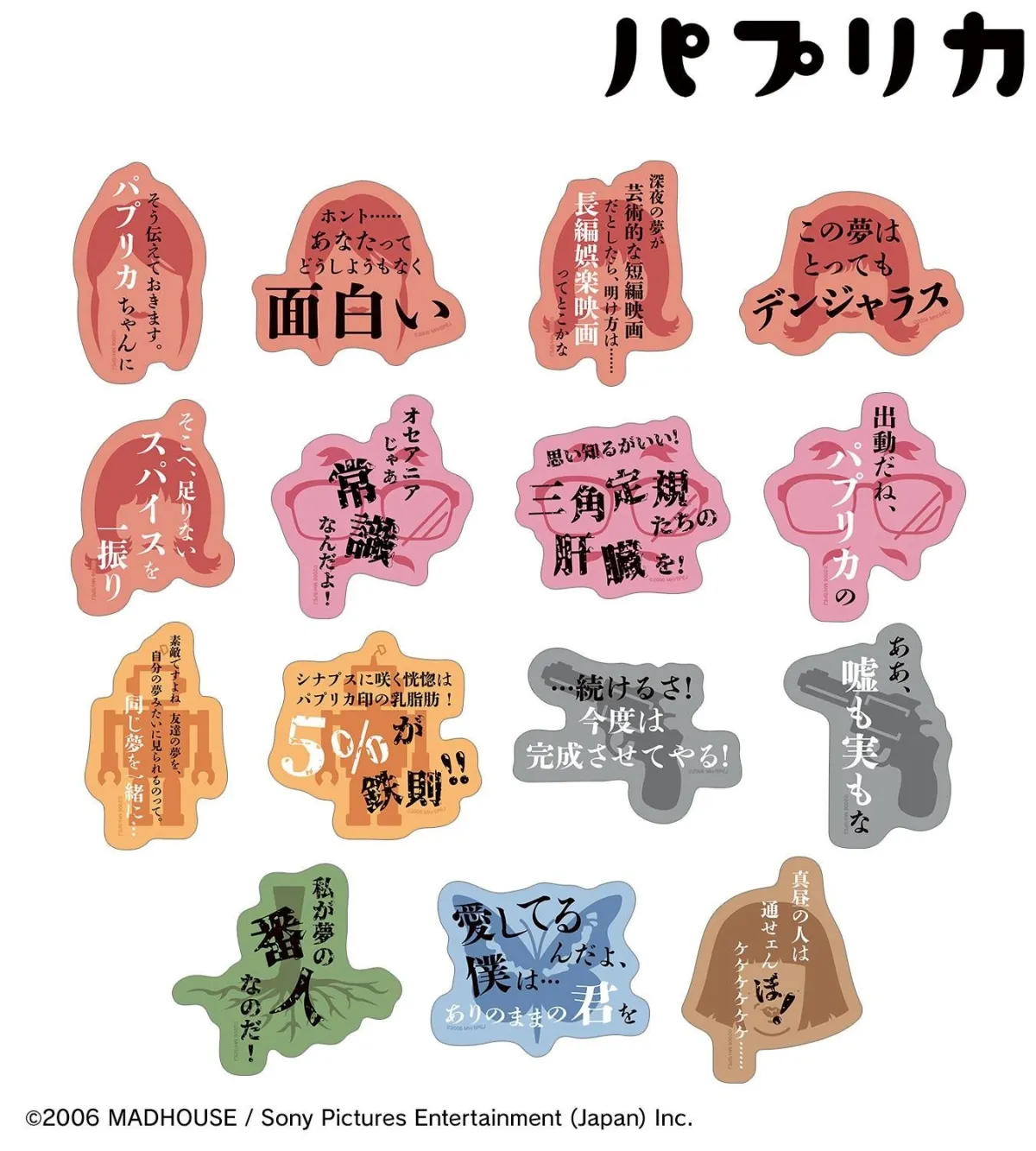 また、予約購入者には「千葉敦子&パプリカ セリフステッカー AMNIBUS限定特典」が付属します。ステッカーは単品で550円(税込)、BOXの場合は8,250円(税込)で、全15種のラインナップから選ぶことができます。