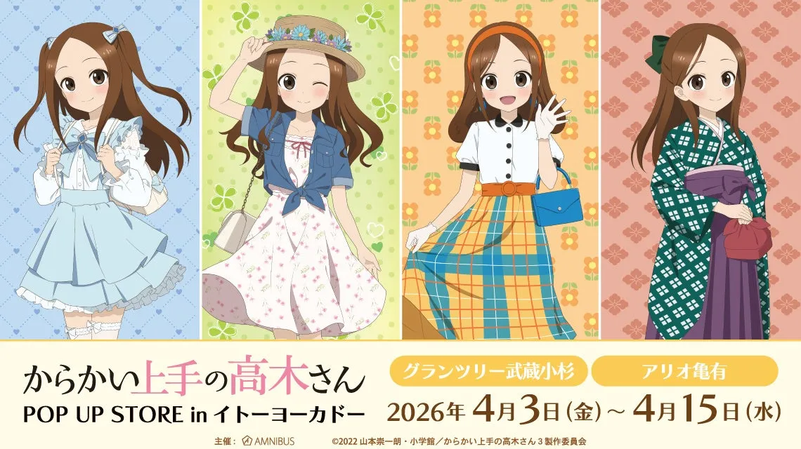 漫画やアニメのファンにとって、待望のイベントの開催が決定しました。株式会社アルマビアンカが主催する『からかい上手の高木さん』のPOP UP STOREが、2026年4月3日から15日までの期間、イトーヨーカドーのグランツリー武蔵小杉店とアリオ亀有店の2店舗にて実施されます。