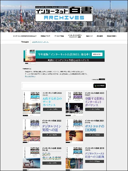 インターネットの黎明期から現在までの歴史を振り返ることができる「インターネット白書ARCHIVES」に、2024年版が新たに追加されました。このサービスは、インターネット協会(IAjapan)、日本ネットワークインフォメーションセンター(JPNIC)、日本レジストリサービス(JPRS)、およびインプレス・サステナブルラボの共同により運営されています。