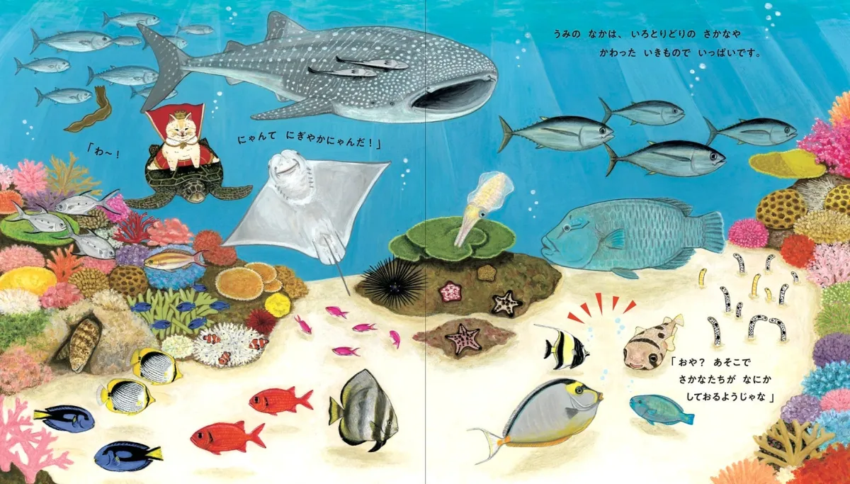 KORIRIが手掛ける本書は、ただの物語にとどまらず、親子で一緒に楽しめる構成になっています。絵本を楽しんだ後には、48種類の海の生き物の名前を覚えることができる「まにゃび絵本」としても機能します。楽しみながら学べる、親子にとって嬉しい要素が詰まっています。
