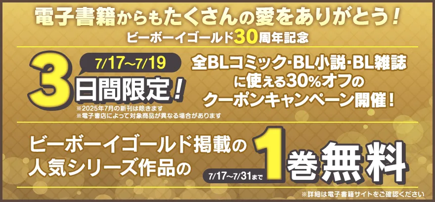 株式会社リブレが発表した「BE・BOY GOLD(ビーボーイゴールド)」30周年を祝い、特別な電子書籍キャンペーンが2025年7月17日から開催されます。このキャンペーンでは、ビーボーイゴールド掲載の人気作品の1巻を無料で手に入れるチャンスが訪れます!キャンペーンの詳細をご紹介します。