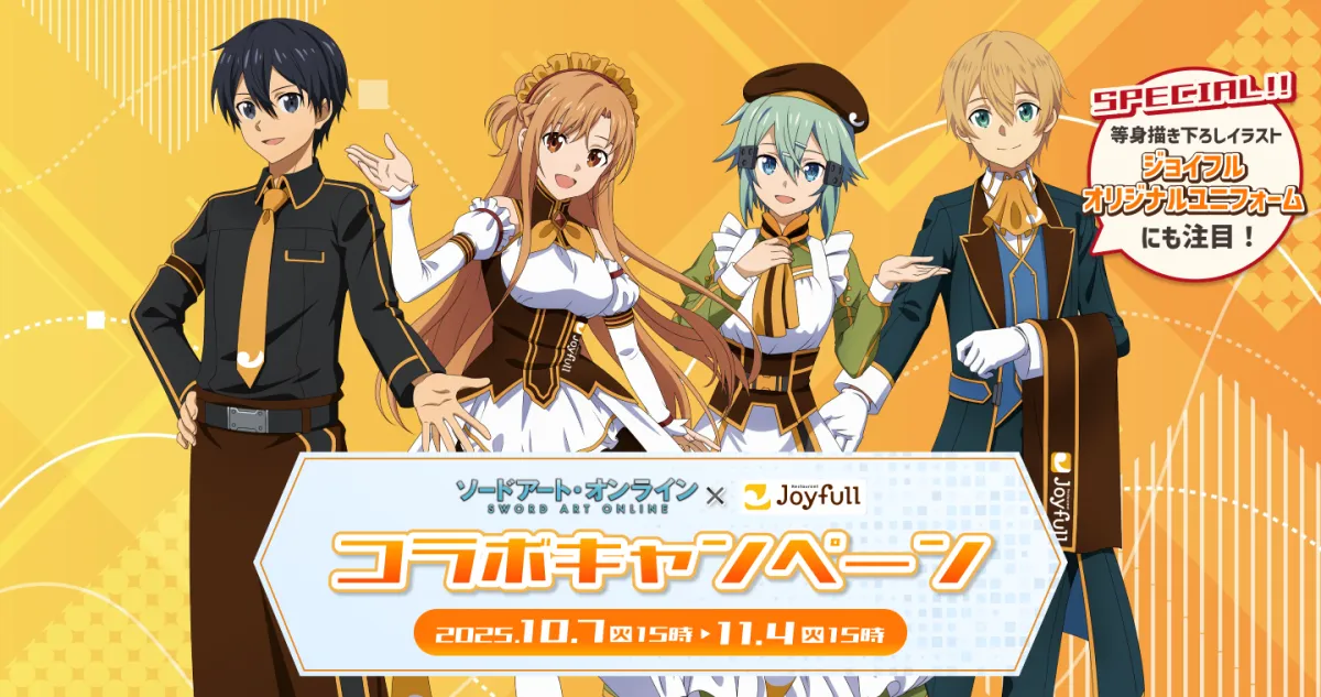 2025年10月7日(火)から11月4日(火)の期間に、ファミリーレストラン「ジョイフル」と大人気TVアニメ「ソードアート・オンライン」がコラボすることが発表されました。このキャンペーンでは、様々な特典やプレゼントが用意されており、ファンにとって見逃せないイベントとなっています。
