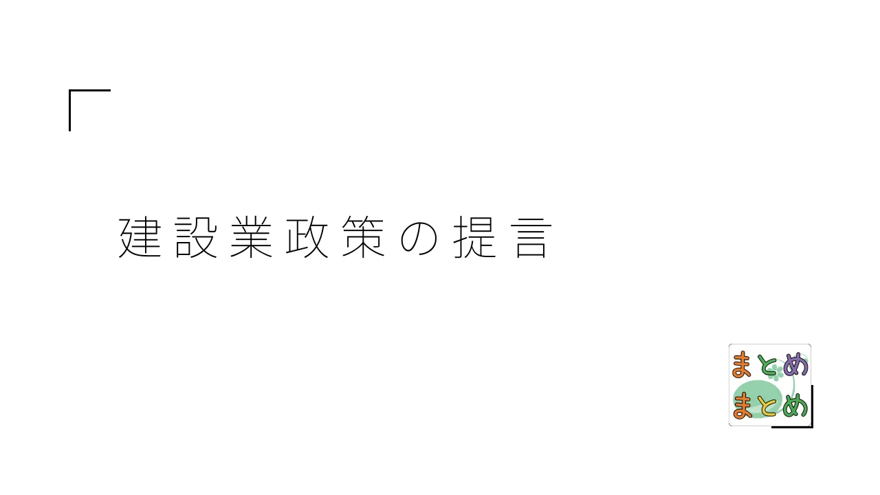 - - 企業評価の見直し: 経営事項審査などにおける企業評価基準を再考し、建設業の成長を促進すること。