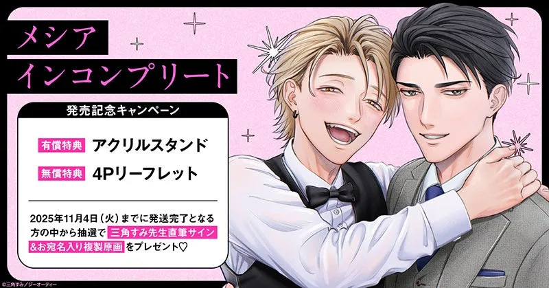 2025年10月1日、株式会社TORICOが運営するホーリンラブブックスから、人気作家三角すみ先生の新たなコミックス『メシア インコンプリート』が登場します。この発売を記念して、豪華なキャンペーンが開催されることが発表されました。特に注目すべきは、抽選で当たる直筆サイン入りの複製原画!