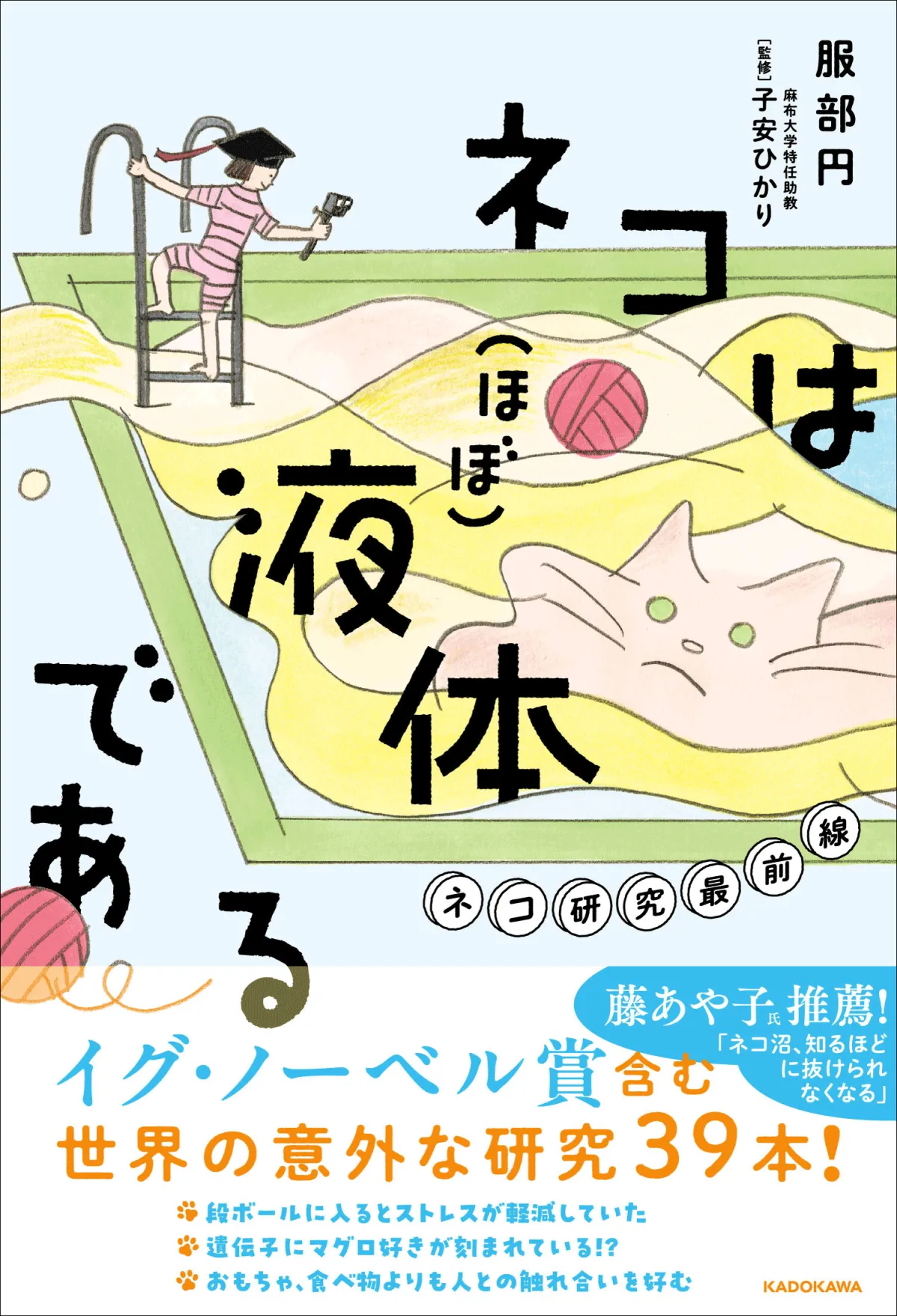 株式会社KADOKAWAより、2025年7月4日に新刊『ネコは(ほぼ)液体である ネコ研究最前線』が発売されます。この本は、イグ・ノーベル賞を受賞した「ネコは液体」説をはじめ、各種ユニークな猫に関する研究39本を紹介するものです。著者の服部円氏と監修の子安ひかり氏のもと、科学的な視点から猫の行動や心理、さらには生理的特性に迫っています。