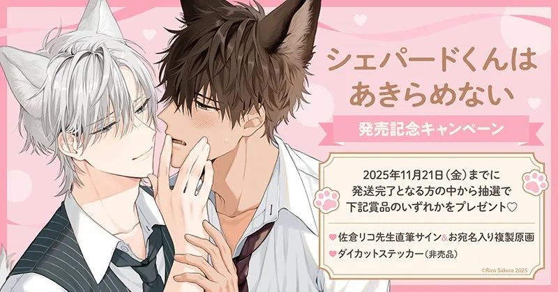 株式会社TORICOが運営するホーリンラブブックスにて、人気漫画家佐倉リコ先生の最新コミックス『シェパードくんはあきらめない』の発売を祝う特別なキャンペーンが実施されています。本作品は2025年10月15日に発売予定で、ファン待望の新刊です。これに伴い、同書を含む特定の商品を購入した方の中から抽選で、佐倉先生の直筆サインが入った複製原画や非売品のダイカットステッカーがプレゼントされる、豪華なチャンスが用意されています。