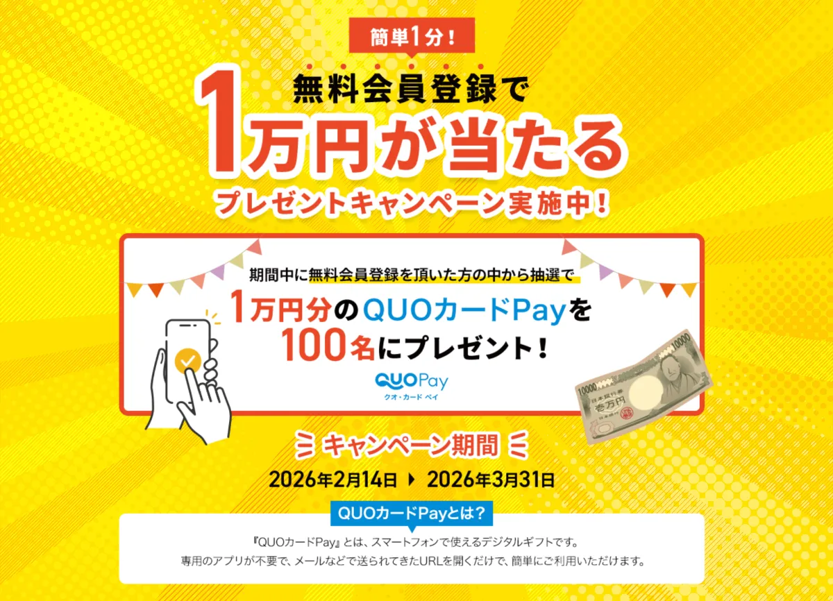 名古屋の民放テレビ5局が共同で運営する動画配信サービス、Locipo(ロキポ)では、2月14日から3月31日まで新規会員を対象としたプレゼントキャンペーンを開催します。この期間中にLocipoアプリをダウンロードし、会員登録を行った方の中から抽選で100名様に「QUOカードPay 1万円分」を贈呈します。総額100万円にも上る豪華なキャンペーンです。